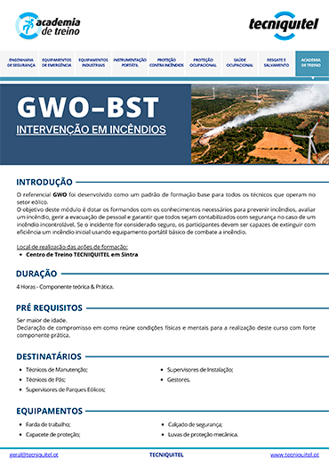 Para mais informações sobre o curso GWO – Intervenção em Incêndios deve solicitar a ficha técnica.