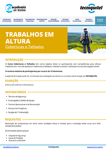 O curso coberturas e telhados ensina a trabalhar com segurança em coberturas e telhados, abordando medidas de segurança e o uso correto de equipamentos. Quem trabalha em telhados ou coberturas necessita de conhecimentos, competências e experiência adequados para trabalhar em segurança. Os trabalhadores necessitam de formação que lhes permita reconhecerem os riscos, compreenderem os métodos de trabalho apropriados e disporem das competências necessárias para os executar.